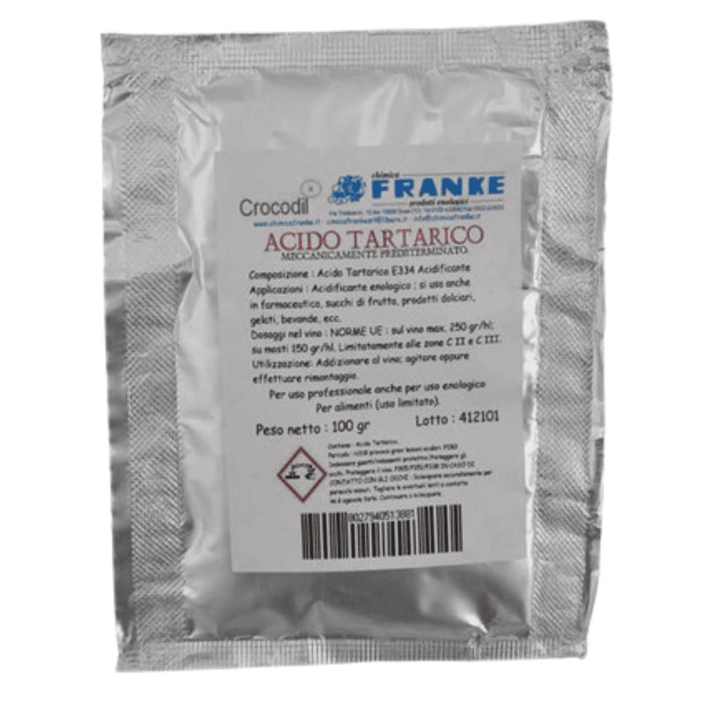 🌿 Acido Tartarico Franke è l’alleato perfetto per enologi, pasticceri e produttori di bevande, garantendo acidità equilibrata e stabilità ottimale dei prodotti. Ideale per vini, mosti, succhi di frutta, gelati, prodotti dolciari e applicazioni farmaceutiche, assicura risultati professionali e costanti.