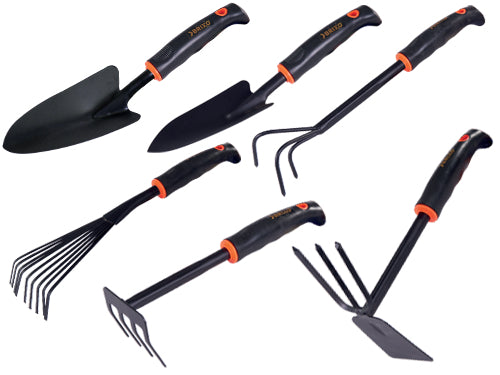 Attrezzini da giardino con manico in materiale plastico e testa in acciaio ad alta resistenza, verniciatura a polveri epossidiche