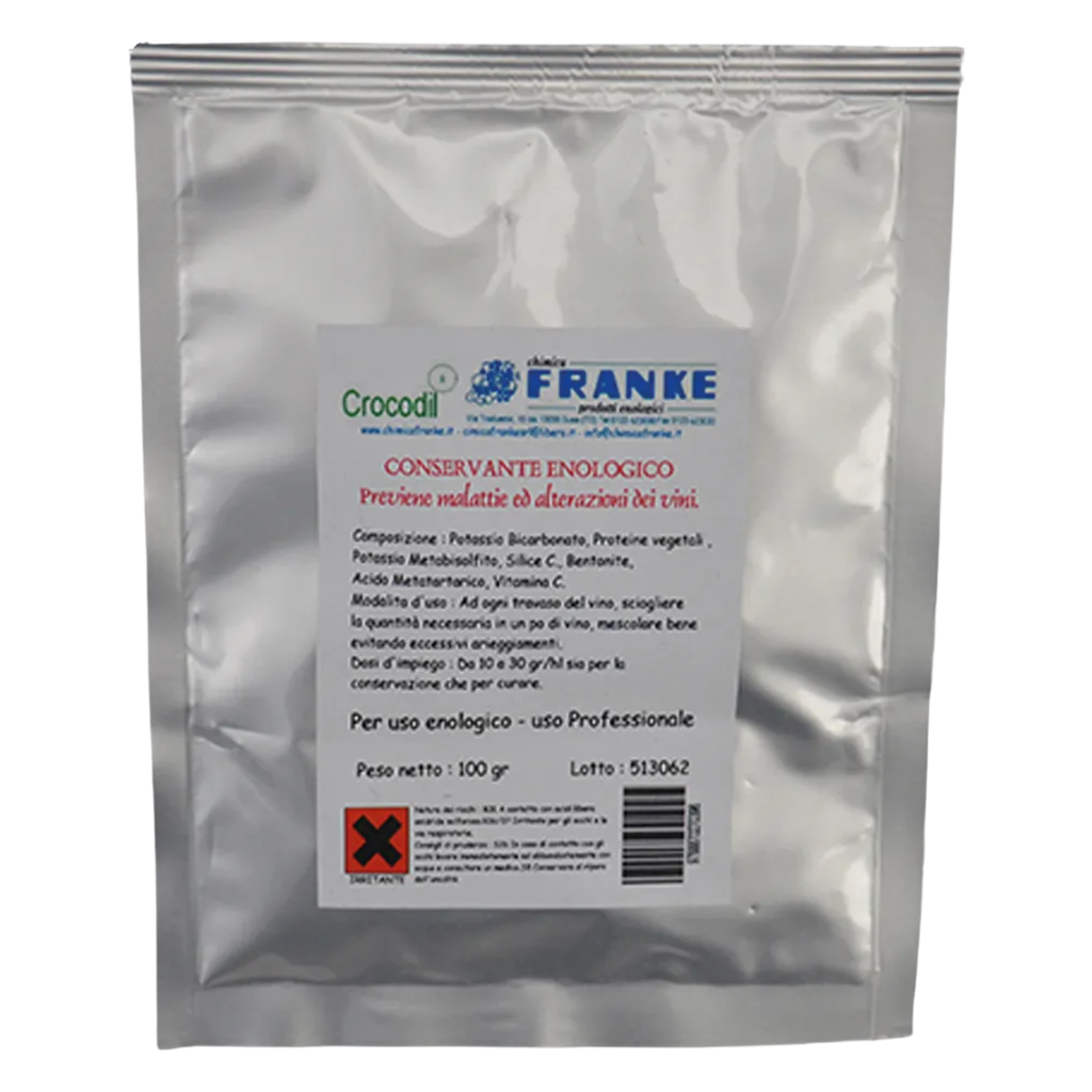 Il Conservatore Enologico Franke è un preparato professionale studiato per preservare la qualità e la sanità dei vini durante la fase di conservazione. Grazie alla sua formula attiva in polvere, consente di mantenere il vino stabile nel tempo, prevenendo alterazioni indesiderate e preservando le caratteristiche organolettiche originali.