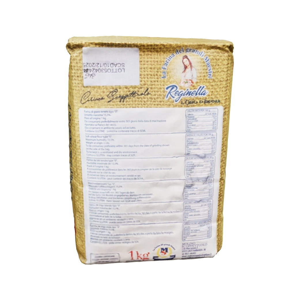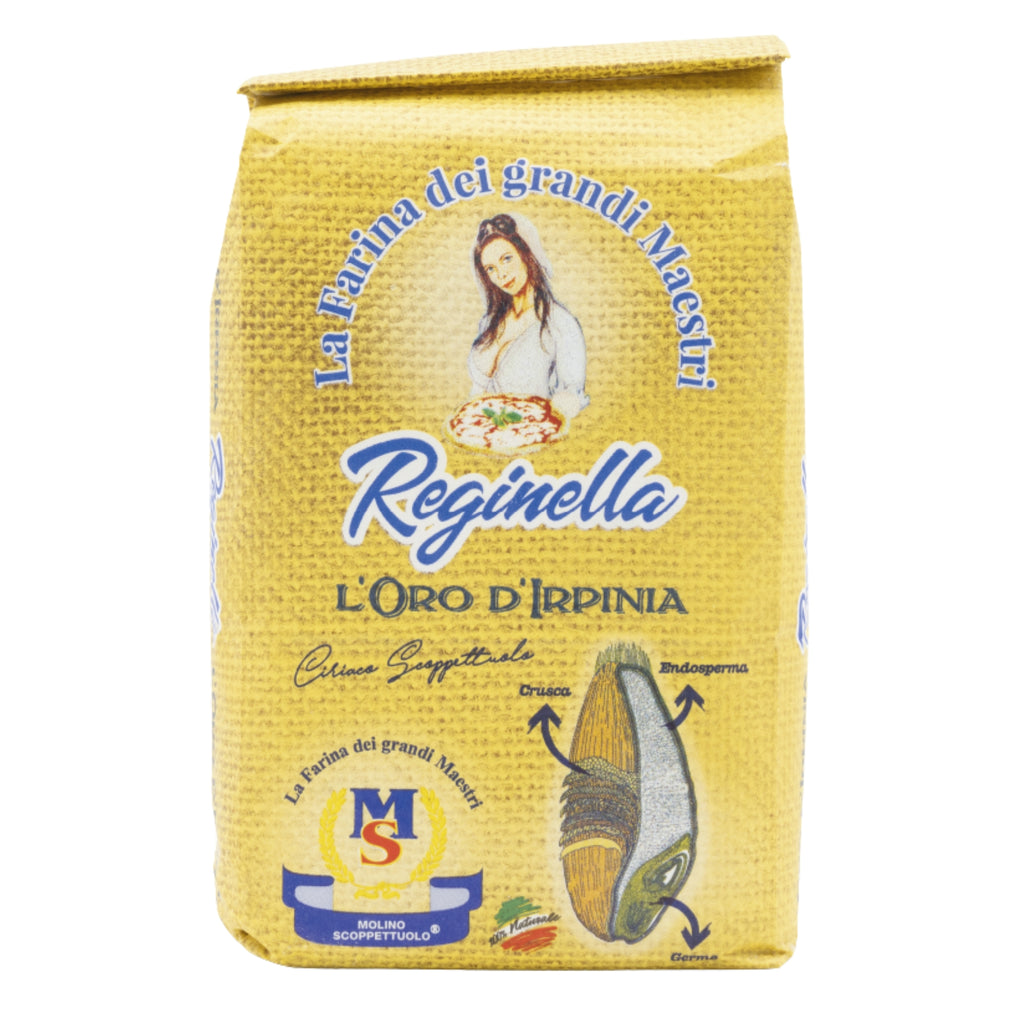 La Farina Reginella "L'Oro D'Irpinia" Tipo 0 Molino Scoppettuolo è il frutto di una selezione accurata di grani teneri di altissima qualità, macinati con tecniche moderne che preservano le proprietà naturali del prodotto. Grazie alle sue caratteristiche chimico-fisiche eccellenti, questa farina è perfetta per chi desidera ottenere pizze con cornicione alto, soffice e ben alveolato, proprio come in pizzeria.