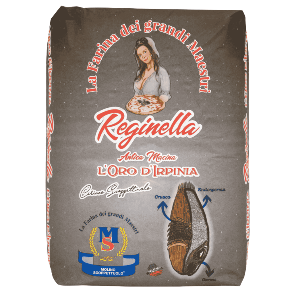 La Farina di Grano Tenero Tipo 2 Scoppettuolo Pizzeria Reginella Antica Macina “L’Oro d’Irpinia” è una farina professionale di altissima qualità, ottenuta dalla selezione delle migliori varietà di grano tenero italiano. Grazie alla sua forza W 350 e all’ottimo equilibrio tra elasticità e tenacità, è ideale per impasti soffici, alveolati e altamente digeribili, perfetti per pizze napoletane, pizze in teglia o pizze croccanti e leggere.