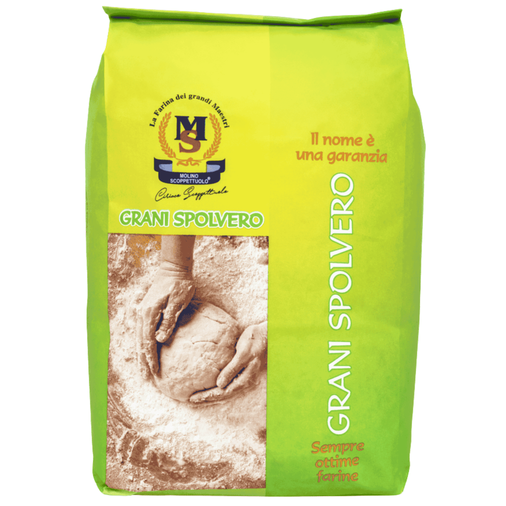 I Grani Di Spolvero Professionali Scoppettuolo sono una farina di frumento di altissima qualità, selezionata e macinata con cura per garantire una consistenza fine e uniforme. Ideali per pizzaioli, panificatori e professionisti del settore, assicurano una lavorazione perfetta dell’impasto e una cottura impeccabile.