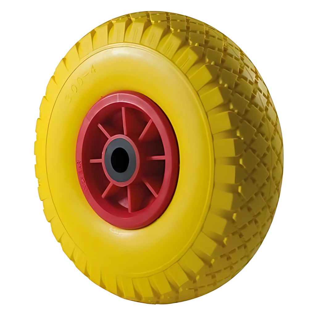 Il disco è in plastica antiurto, pensato per resistere a urti, pressioni e usura quotidiana. Il battistrada è in poliuretano pieno, materiale noto per la sua elevata resistenza e capacità antiforatura, rendendolo perfetto per l’uso intensivo senza necessità di manutenzione o gonfiaggio.